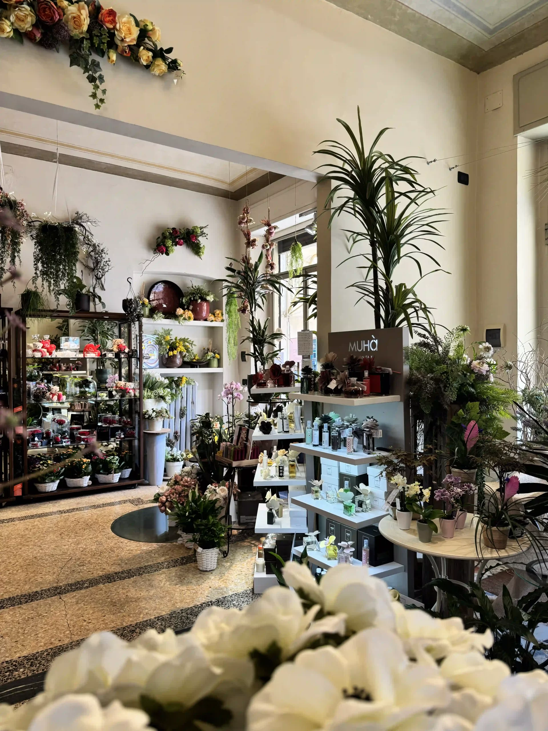 In negozio puoi trovare un’ampia selezione di fiori freschi e recisi, piante per interni, fiori finti e stabilizzati, oltre ad una ricca e variegata gamma di articoli per l’arredamento e gli addobbi.